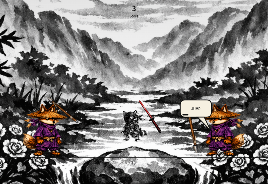 Parry Racoon es un juego de acción y reflejos con estilo visual de tinta china.